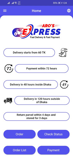 Aro’s Express is an innovative logistics and door to door delivery service provider. Generally, our app will support you to get our services, like deliver your product within the shortest period according to the locations of your choice. By using this app you may create order and can check the current status of your parcels.