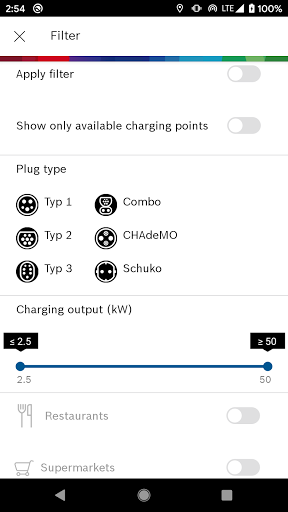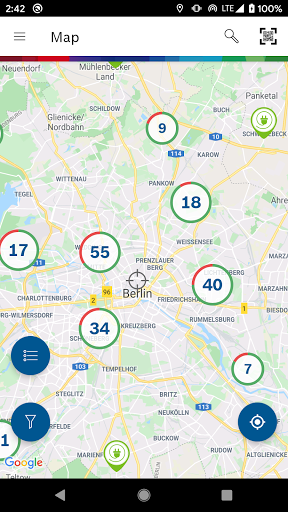 • Map and search functions to locate public charging stations, as well as semi- public charging stations for associates, visitors, and guests to locate charging points at Bosch locations
