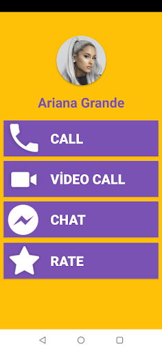 Disclaimer: This App is purely fictional and not an official just made by For Fun It's just entertainment for ! In other words, this is not Ariana Grande who calls, but a simulation of fake calls and fiction.