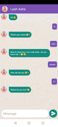 Disclaimer: This App is purely fictional and not an official just made by For Fun It's just entertainment for ! In other words, this is not Leah Ashe who calls, but a simulation of fake calls and fiction.