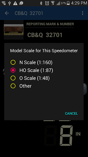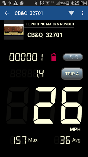 RollBy Train Speedometer is a free (and ad-free) speedometer and odometer for model trains on your Android phone or tablet.
