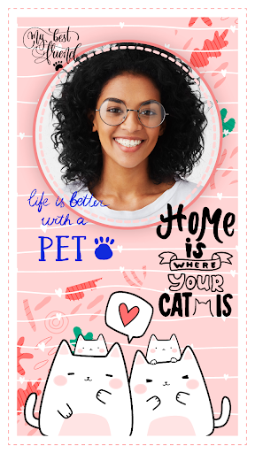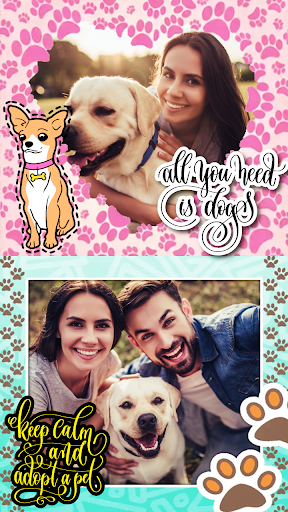 Design a pet photo with your favorite dog and cat photo frames, photo stickers, great photo face color filters, write some text on photo with different fonts and print it out, create a photo collage scrapbook, but without all the glue, cutting and mess. Or just make a digital photo album and share it with everyone! Arrange a pet photo album and have an animal photo shoot, pet photo dress up and save all the pictures in your pet photo diary!