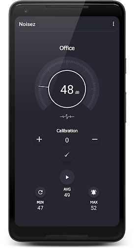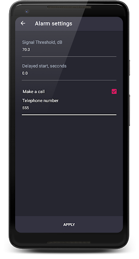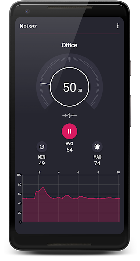 generates a graph of the ambient noise level. The accuracy depends on the type of device used. For a more accurate measurement, it is necessary to perform calibration based on the values ​​of the reference instrument. The application contains a table of approximate noise sources, which gives an idea of ​​the average loudness of the sound. You can also set up a notification that triggers at a certain signal level.