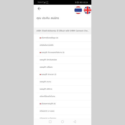 ● พนักงานสามารถทำการบันทึก เวลาทำงานทั้งในและนอกสถานที่, ขอเบิกสวัสดิการ, ขอเบิกเงินสดย่อย, ขอลา, ขอล่วงเวลา, ขอเปลี่ยนกะ, ร้องขอเปลี่ยนประวัติ, แจ้งร้องเรียนต่างๆ ผ่านระบบได้