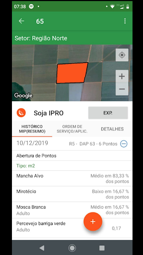 With the application you have a practical tool to insert geo-referenced surveys, thus benefiting from their history, an infestation map, a graph of pest evolution, observations in the field, promoting better pest control avoiding unnecessary applications of pesticides thus contributing to the preservation of the environment.