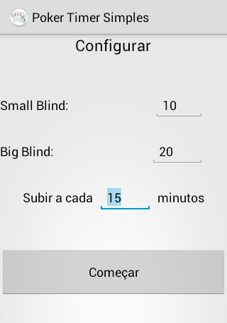 Timer com a intenção de auxiliar o controle de subida das Blinds durante a sua partida de Poker. Comece a jogar com apenas um clique!