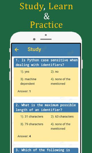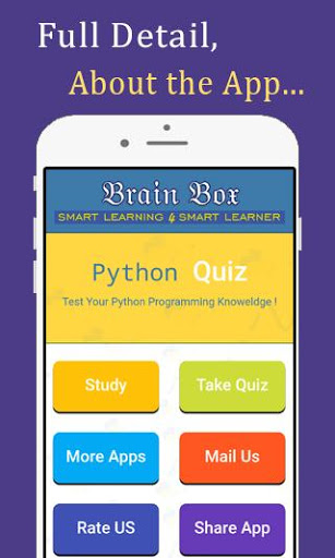This python programming quiz contains python questions with answers (Topics wise) and as well as QUIZ. Student can read questions with answers and check their knowledge through python programming quiz app.