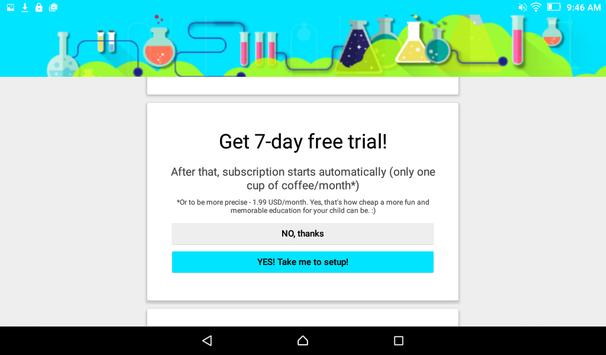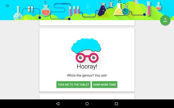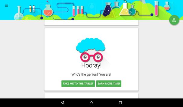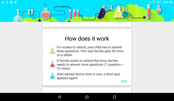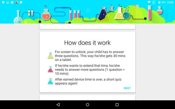 This way, it becomes a great motivation to learn! Once your child answers 3 questions correctly - he/she gets 30mins on a tablet. If he/she wants to earn more time, your kid needs to answer more questions. Each correctly answered question gives your child 10 minutes more on a tablet.