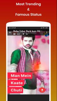 Bhojpuri video status app provide you best, new and latest bhojpuri status video. After installing this App you can use this app video in your social media for status video. There are many different categories of bhojpuri vidoe songs in best user interface.