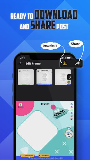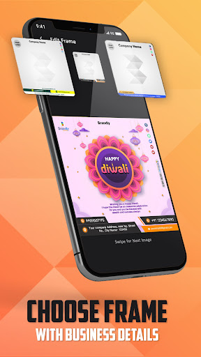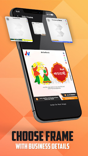 Use this app to make your business or personal frames, where you just need to register your number and verified the same, then enter your company details and logo. Great!! And you are at the right place.