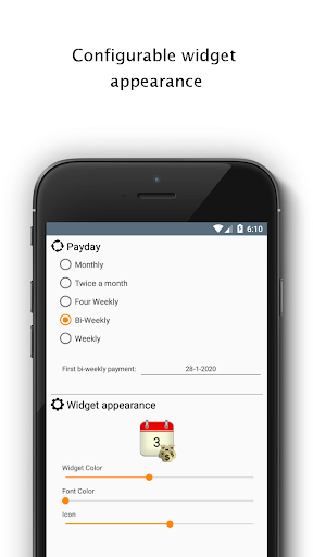 Help yourself with this new little widget for your home-screen. Set up an daily countdown to payday! Customize the widget and choose several colors and additional icons to combine them into your own designed day counter!