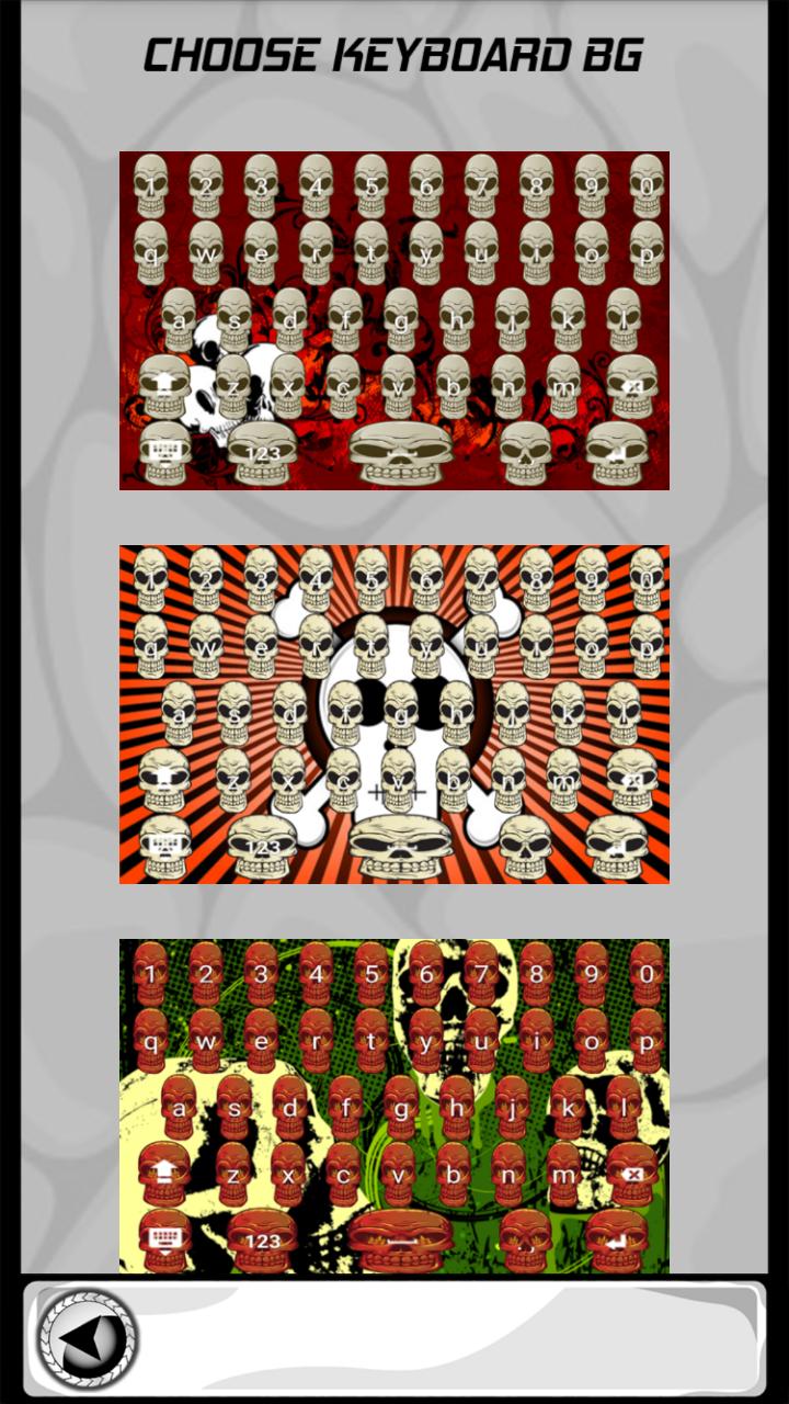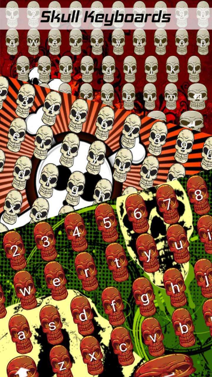 ♫♫♫Now you can personalize your smartphone or tablet according to your interests and likes. You have always been fascinated with the images of the skulls on fire. Those blazing flames make you feel respect and fear at the same time and you cannot wait to set this as the background image. Then scroll through the wonderful collection of the coolest skull button shapes that we have prepared for you. Select the one you like the most and make latest and stylish keyboards. You can show them to all of your friends to impress them with the scary theme and popular ✔Skull Keyboards✔.