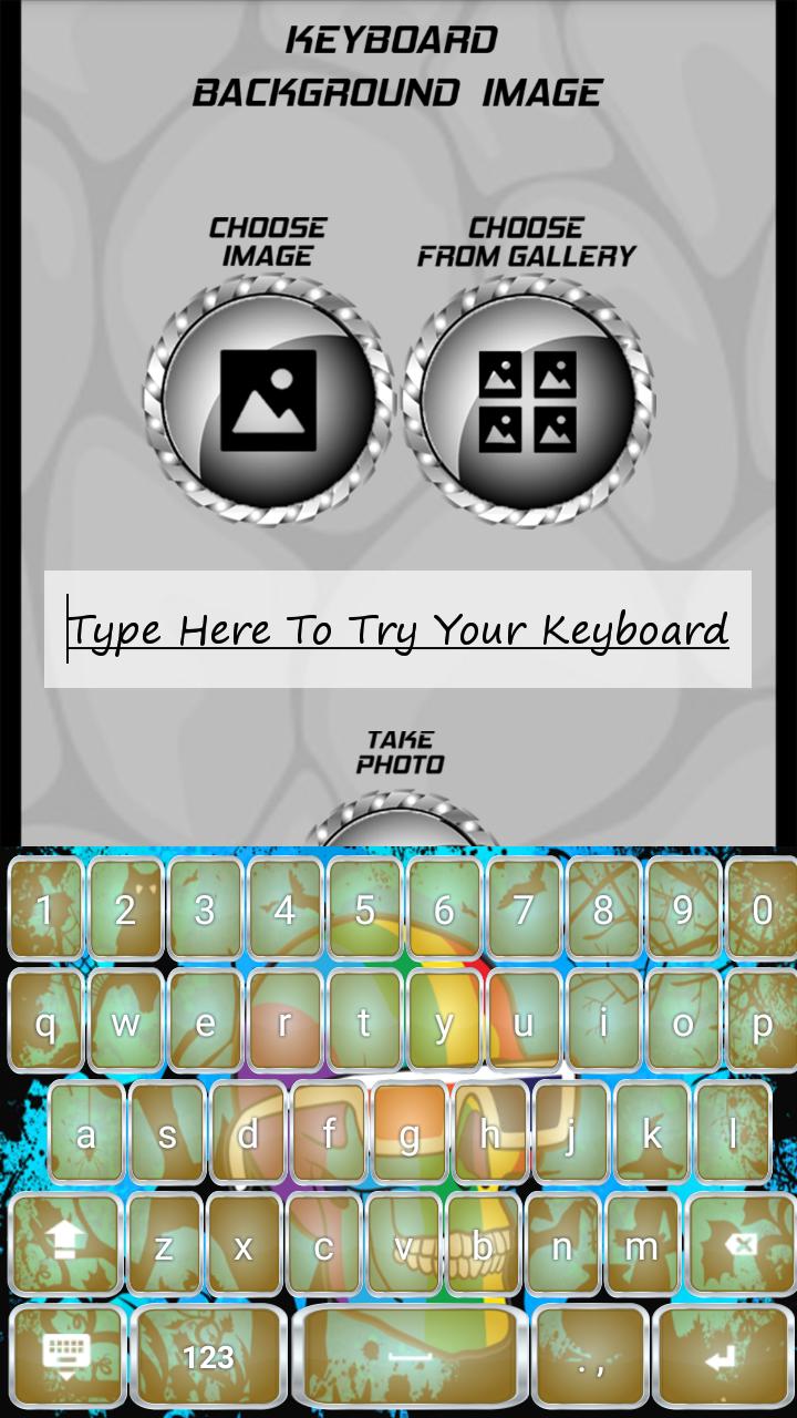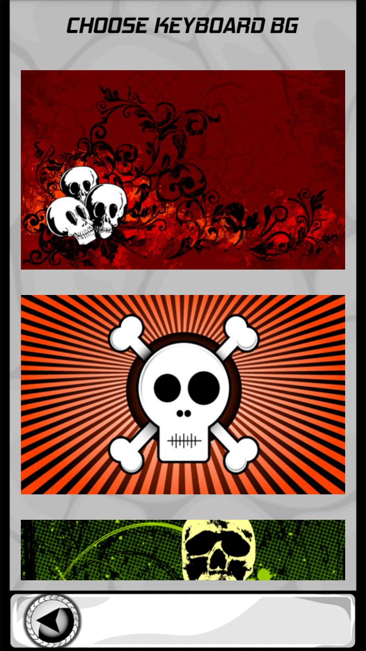 ♫♫♫Get the top application and you will fall in love with it when you see how many options it has for customization. You can even open the gallery on your phone or tablet and browse your own pictures. Select your favorite one and remember that you do not have to set the whole of it as the background image but you can cut just the part of it that you like the most. Then pick the coolest skull button shape ever and make latest and stylish keyboards. They will improve your typing experience in fantastic way with the popular ✔Skull Keyboards✔.