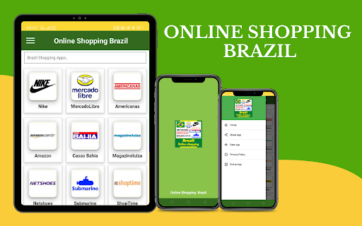 Brazil Online Shopping - Brazilian Shopping App is a collection of all Online Shopping Apps of Brazil like: Buscape, Mercado Libre, MagazineLuiza, Shoptime, Americanas, Nike, Extra and more.