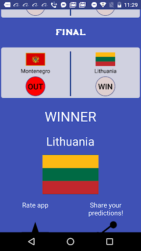 Select group A-H qualifiers, then I-L winners. After that you can choose quarter final, semi-final,3rd place winners.Finally, pick the winner of World cup China 2019 and share all your predictions to your friends and compare with each other! Later in the end of the championship, you can compare how accurate you were. Hope you will like the app, have fun!