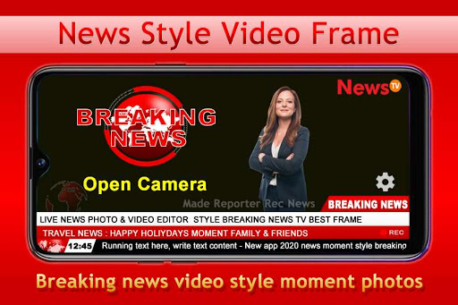 Breaking news video reporter is a unique and funny personal news maker application, where you seem to be a television news reporter who is reading news from a photo slide show and also text that you can control to appear alternately and you will fill in the style of television news presenter . breaking news app maker reporter tv rec.
