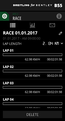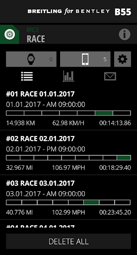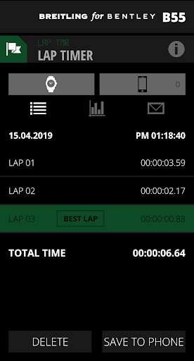 The B55 RACING app enables the user to verify and adjust at a glance the main settings of the Bentley Supersports B55 chronograph, as well as swiftly access its different functions. The smartphone’s memory enables the different chronograph measurements to be stored so that they can be seen, compared or even transferred to other apps. The smartphone’s screen offers unparalleled reading comfort, thus bringing a new dimension to stored data.