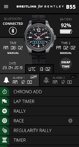 The entirely autonomous Bentley Supersports B55 was designed as a chronograph in its own right, with the smartphone connection serving to improve the functionality and store or transmit data.