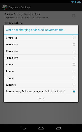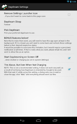 - Setting to allow daydream to start when the screen goes off (as greatly requested).