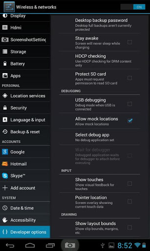 - For Client, ensure the 'mock locations' is enabled. It is under Settings (see screen shot)