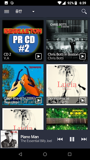 장르, 아티스트, 앨범별로 미디어 라이브러리에 접근할 수 있으며, 파일을 직접 억세스 하는것 또한 가능합니다.
