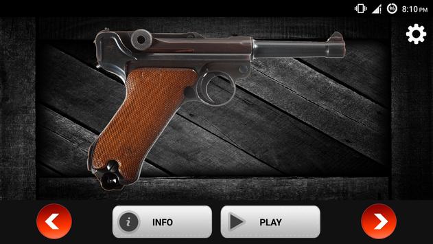 Select your favourite gun weapon of choice and start shooting by clicking on the screen! This guns simulator is the most realistic simulation shots of weapons. This weapons simulator is a large collection shots sounds from different types of weapons. This application contains almost one hundred different types of weapons, such as machine guns, machine guns, grenades, pistols, revolvers, as well as sniper rifles and shotguns. This collection of sounds of shots guns will suit everyone who is interested of differences weapons types. Each weapon has a brief description and an unlimited amount of ammo. So if you want to play war with your friends or just want to scare someone, then this collection of gun sounds for you!