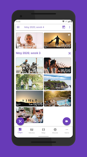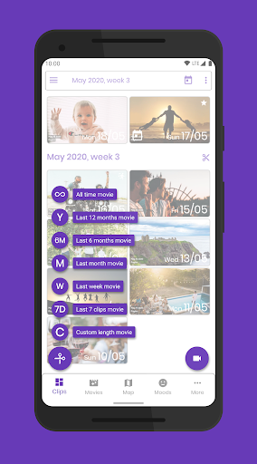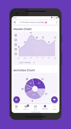 Daylee is built upon a short daily videos, called clips, which are created from your video, photo, drawing, or text. Clips can be 0.5, 1, 1.5, 2, 3, 5 and custom length (up to 10s) long. Daylee then easily compiles these clips into beautiful life movies for you. Thanks to Daylee, clips can be improved with several metadata information like mood or activity emojis, caption, location or text note. All this information are really useful for you in the next app features like Dalyee Map, Moods charts, etc. It's easy. Give it a try 💜.