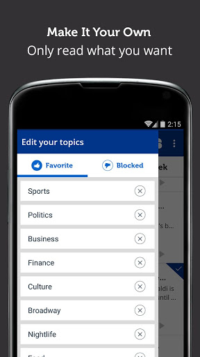 * Customized news feed - if you want to follow specific topic like 'Brooklyn' - no problem. Just select the topics you want to follow on the topics menu to create your personalized news feed.