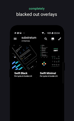 Swift Minimal is a Substratum theme with ~200 overlays, each with a dark or black option, supporting various Samsung devices. It's our only Substratum theme where you can toggle between backgrounds, and all supported apps will get a full dark or black look wherever this is possible. The outcome is a clean minimal look. It also provides further customization tailored for Samsung devices.