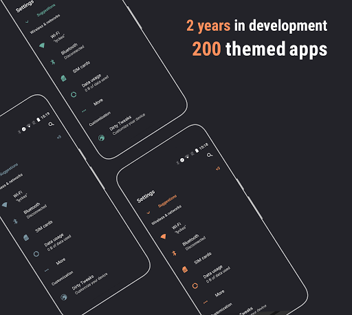 Swift Dark is a Substratum theme with 200 handcrafted overlays, using a selected shade of dark gray for the backgrounds and preserving the apps original accent and primary colors wherever possible. It supports the following systems: