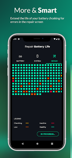 Repair Battery Life is an app focused on improving the quality and duration of the battery by doing a deep scan of the system to detect and correct errors in battery performance.