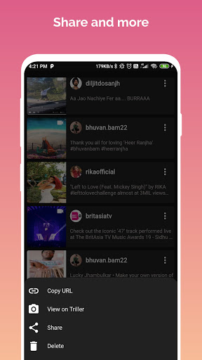 * Open Triller and copy share URL;