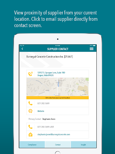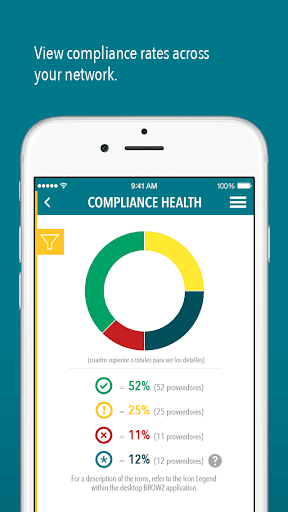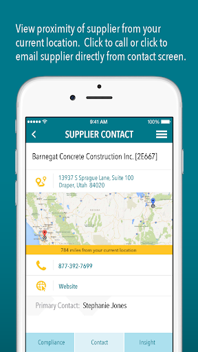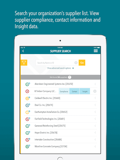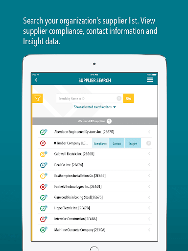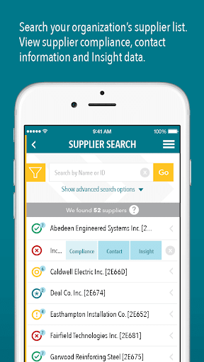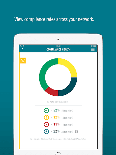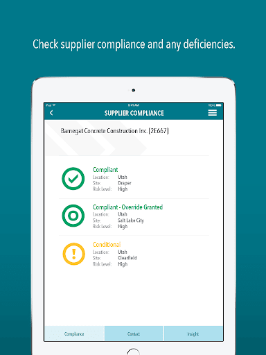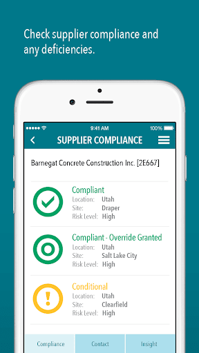 Using your phone or tablet, you can verify supplier compliance, view supplier deficiencies, contact a supplier, examine your overall compliance health, view Insight data, and much more.