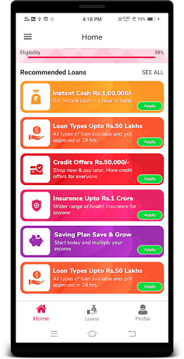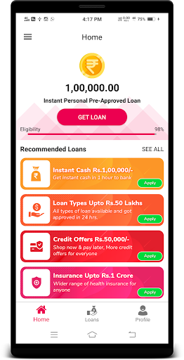 - Get Instant Loan -When cash loan gets approved, Money is instantly deposited to your bank account.