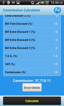 This app calculates T.D.S. and VAT and gives accurate commission amount.