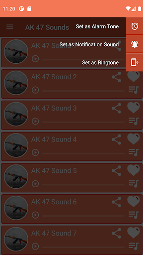 Are you looking for the Popular Gun sound? If that is the case, you don’t have to search anymore, because this AK 47 Sounds app will be perfect for you! This app offers a variety of sounds made by AK-47 rifles including shooting, reloading, and inserting magazines. These noises are from the iconic AK47 rifle used worldwide. You don't need to go to the gun range to hear an AK-47! Also you can use the sounds as a Phone ringtone, notification tone, alarm tone and Message ringtone by simply press and hold on the desired sound, and make your selection.