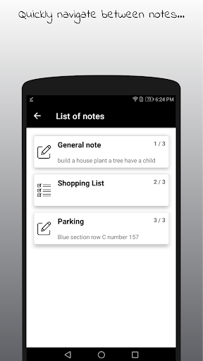 - quick navigation between notes (by swiping or picking from list)