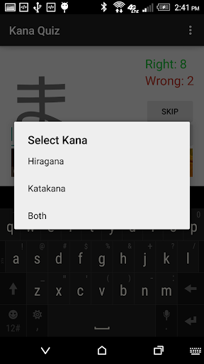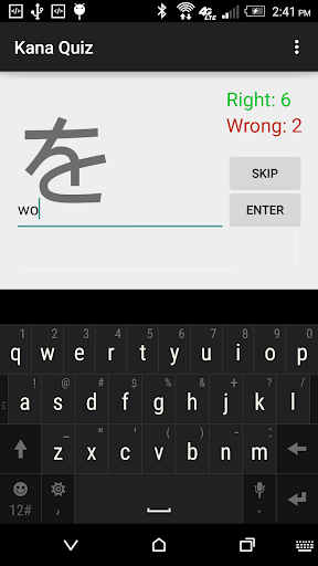 Simply choose whether you would like to study hiragana and katana and type the romaji for each character shown on the screen.