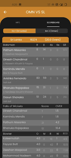 - Match details with playing XI, team squad, scoring patterns and much more.