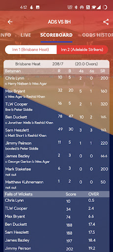 - Live ball to ball score updates.