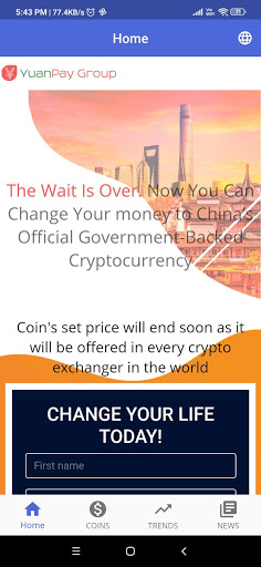 YuanPay Group started the developement of China’s national cryptocurrency in 2014. After a lot of hard work by very talented individuals and close work with the Chinese Government, the currency is now ready for distribution! As of November 25, 2020, anyone can convert any currency to this new China's coin, and full process takes less than 5 minutes.