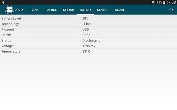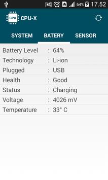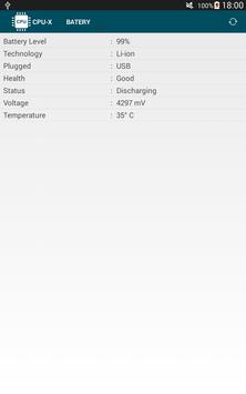 BATERY (level%, technology, health, voltage, temperature, etc. )