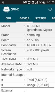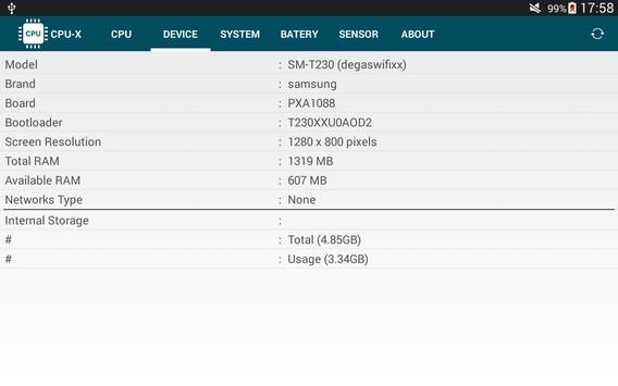 DEVICE (model, brand, board, screen resolution, ram, network type, etc. )