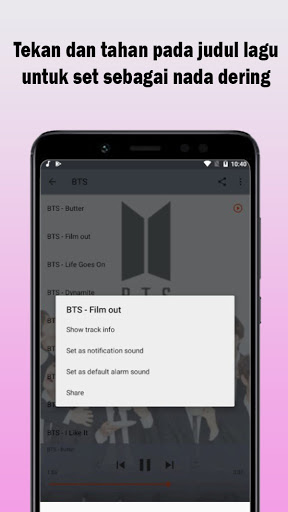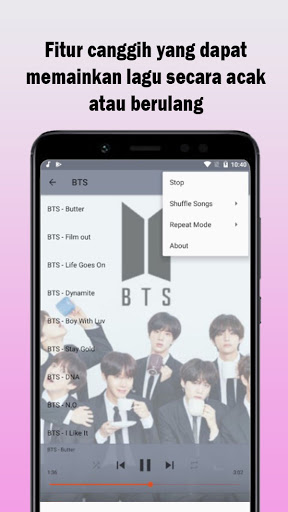 Segera download dan dan dengarkan lagu-lagu BTS yang asyik melalui aplikasi ini.