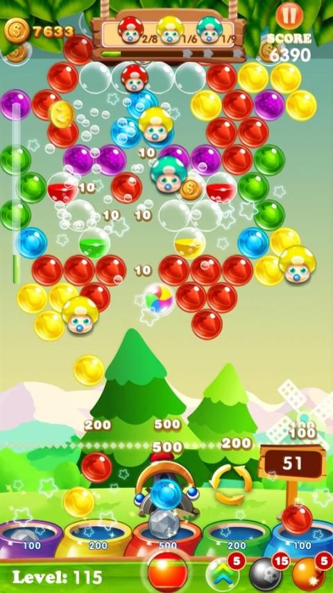 -breaking the bubbles continuously can get high scores as bonus