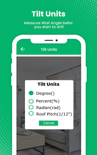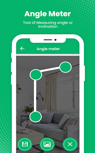 - You can measure angle or slope of any object (eg. roof pitch, table, wall, etc.),