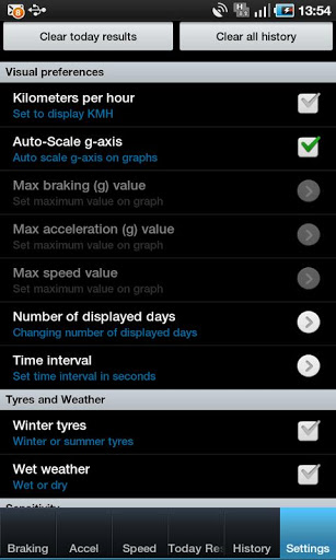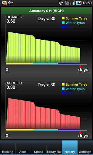 4) Watch stats for daily brakings and accelerations.(Note, app stores accels when speed is changed by more than 6 mph (10 kmh))