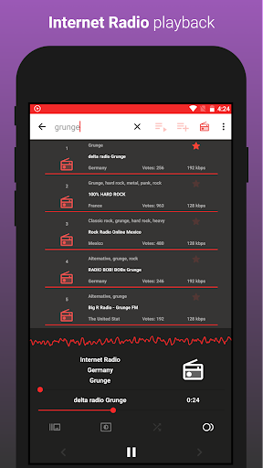 Music Hole Player also features an nice internet radio player which allows streaming of popular radio station. Our collection of radio stations varies in all popular categories: