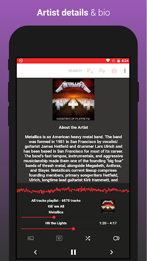 Music Hole Player is an awesome android music player (audio player)targeted to those that are still hooked in the old fashioned 'file' music listening process, rather than todays mainstream streaming format.