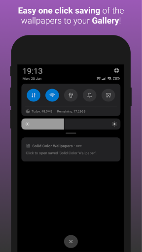 'Solid Color Wallpapers' is an application that let's you choose a color from the whole visible spectrum and allows you to set it as wallpaper.